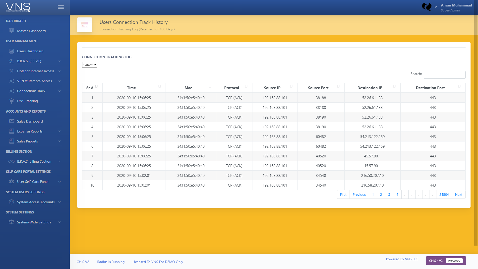 The CHIS-V2 now Maintains Access Logs (Login, Logout Details), connection tracking records, DNS / internet browsing records (if enabled) , User information for Up to 200 Days minimum, and 400 Days maximum.
